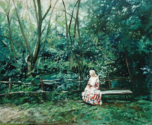 Alain Thorez, "Méditation" Année 1998. Huile sur toile, 1m X 1,20m