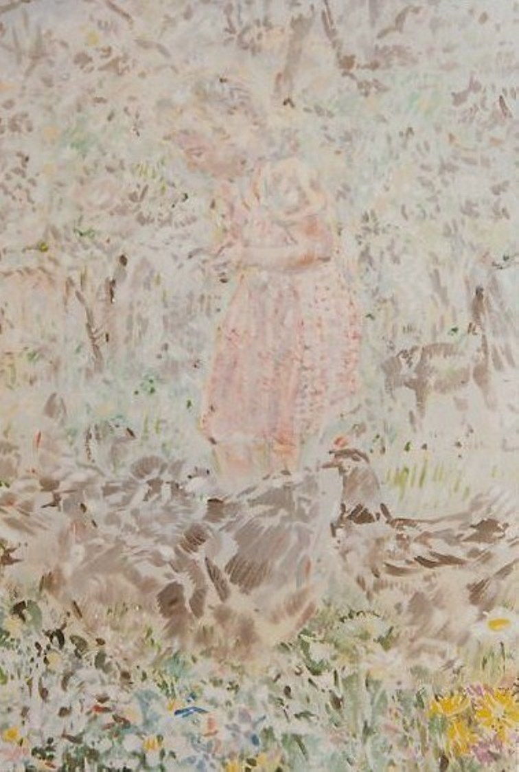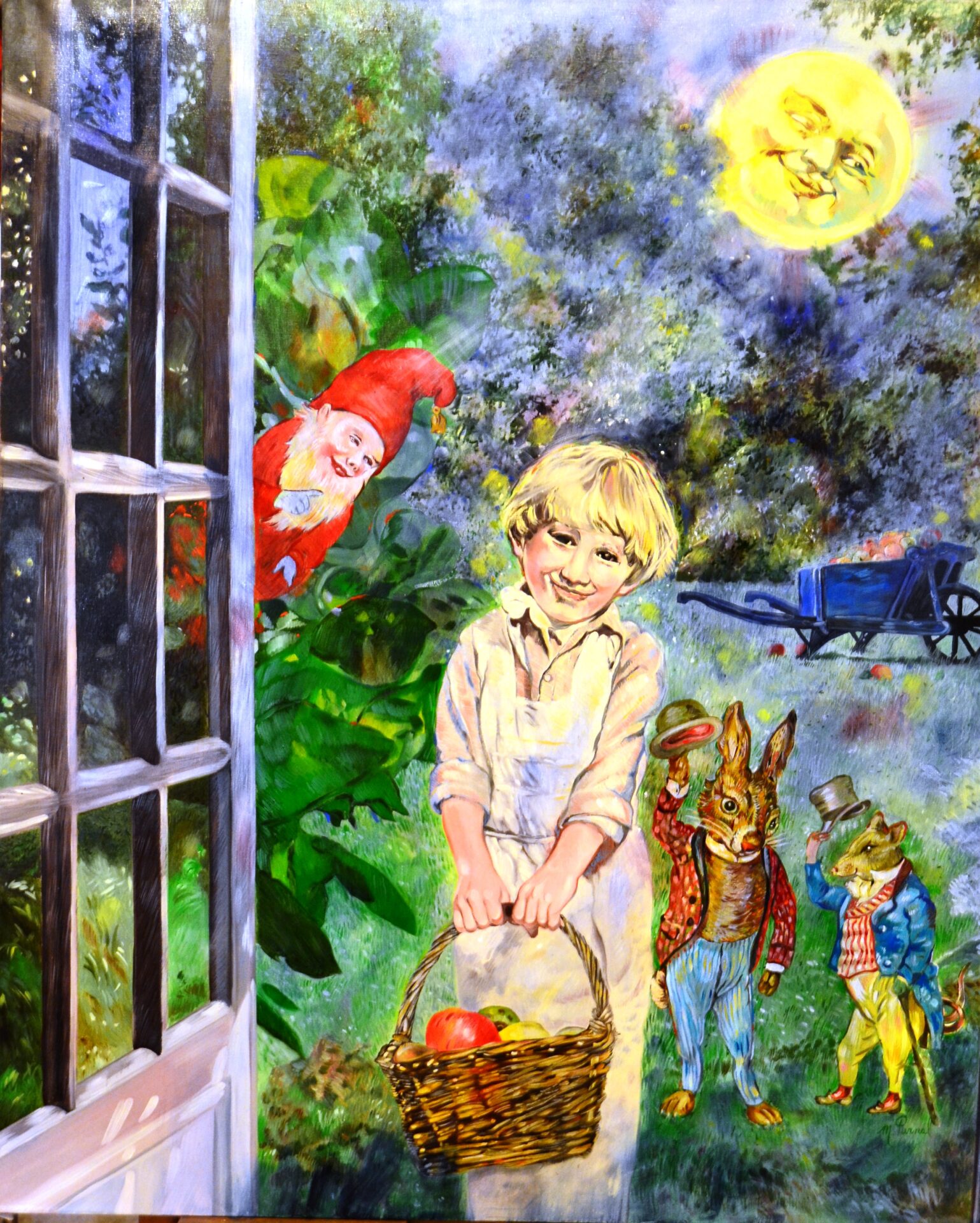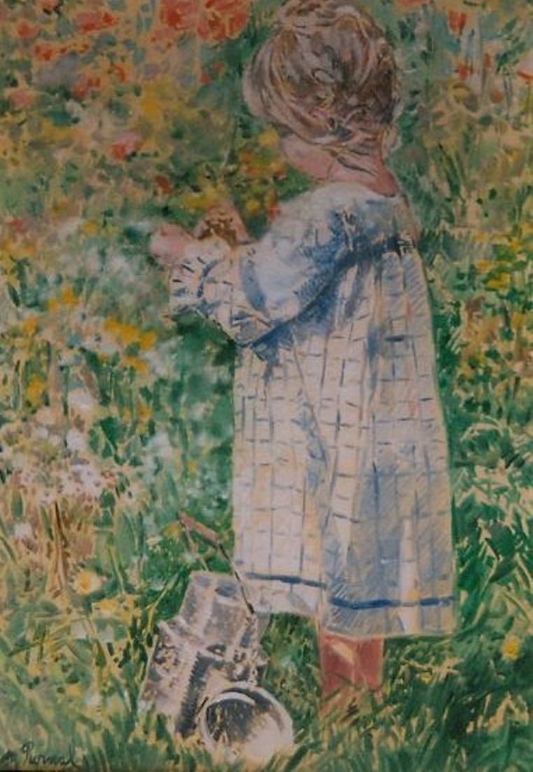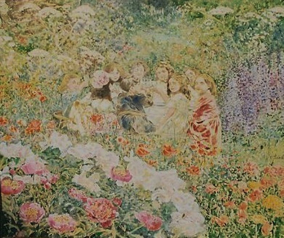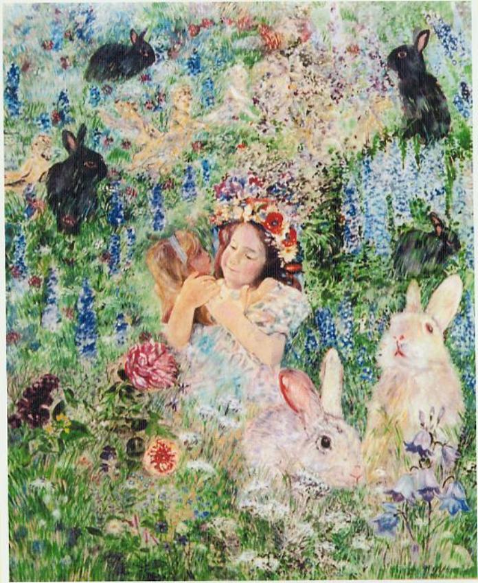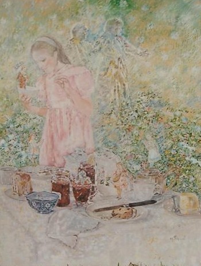 le peintre Michèle purnal entrevoit et met en peinture au passage quelques enfants faisant, très sérieusement, la conversation en compagnie d’un lutin ou de quelques fées parées de leurs plus beaux atours…