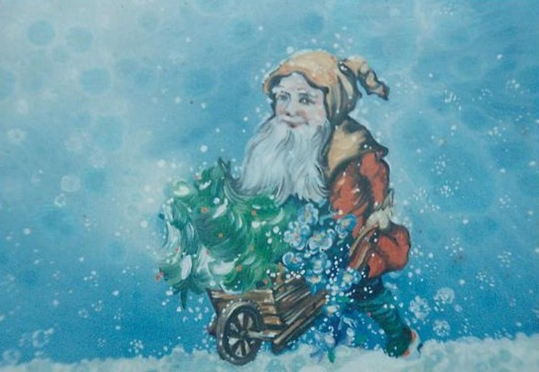 Présent de Noel huile sur toile, 0,18m x 0,24m.