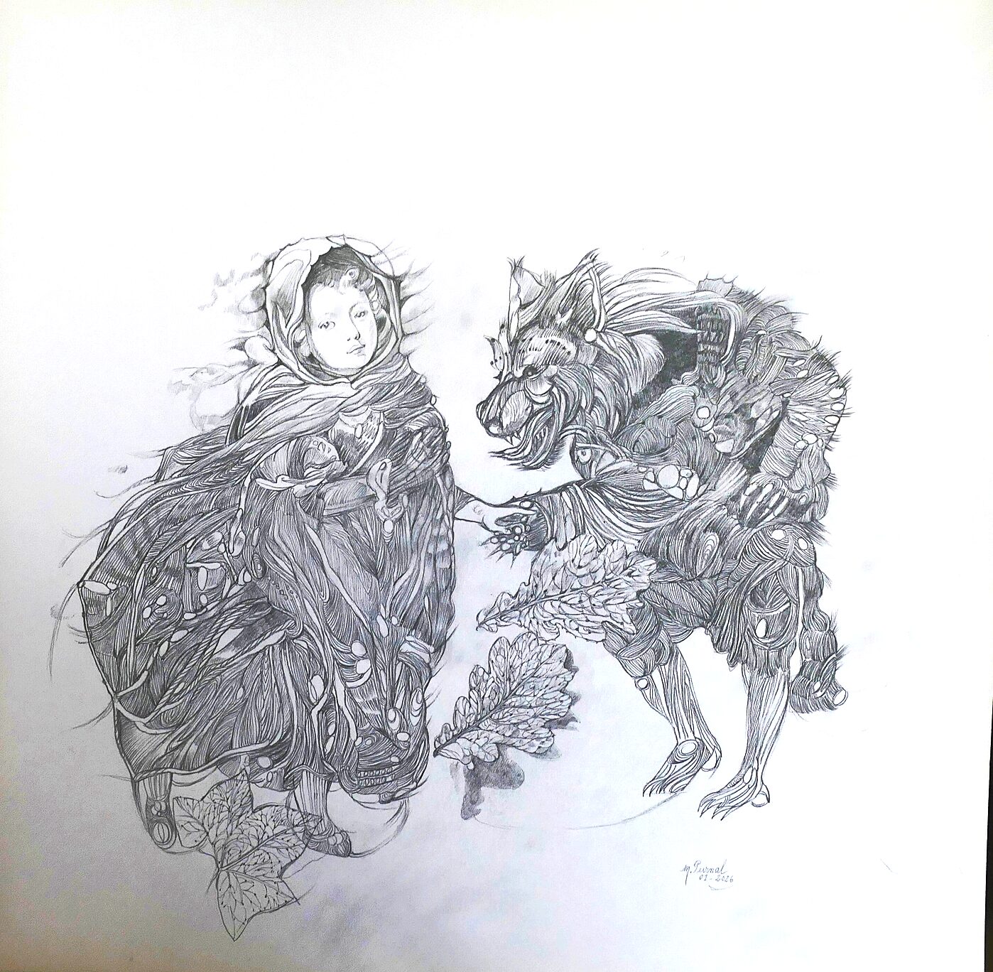 MICHELE PURNAL, (1937) Le Petit Chaperon Rouge Année 2006 Dessin au crayon mine de plomb sur papier Steinbach. 0,60m x 0,60m