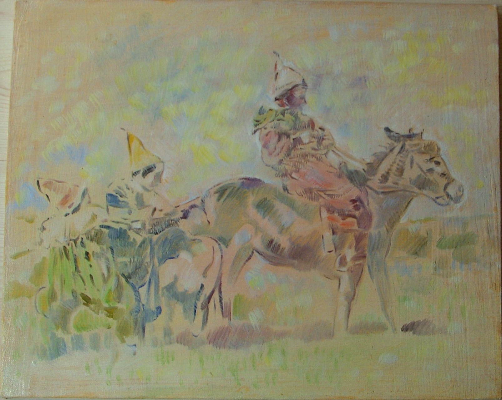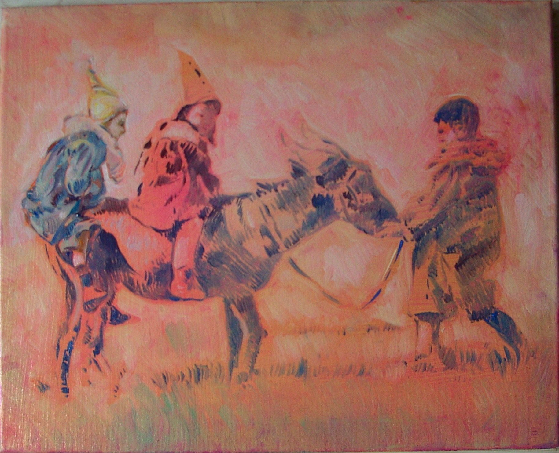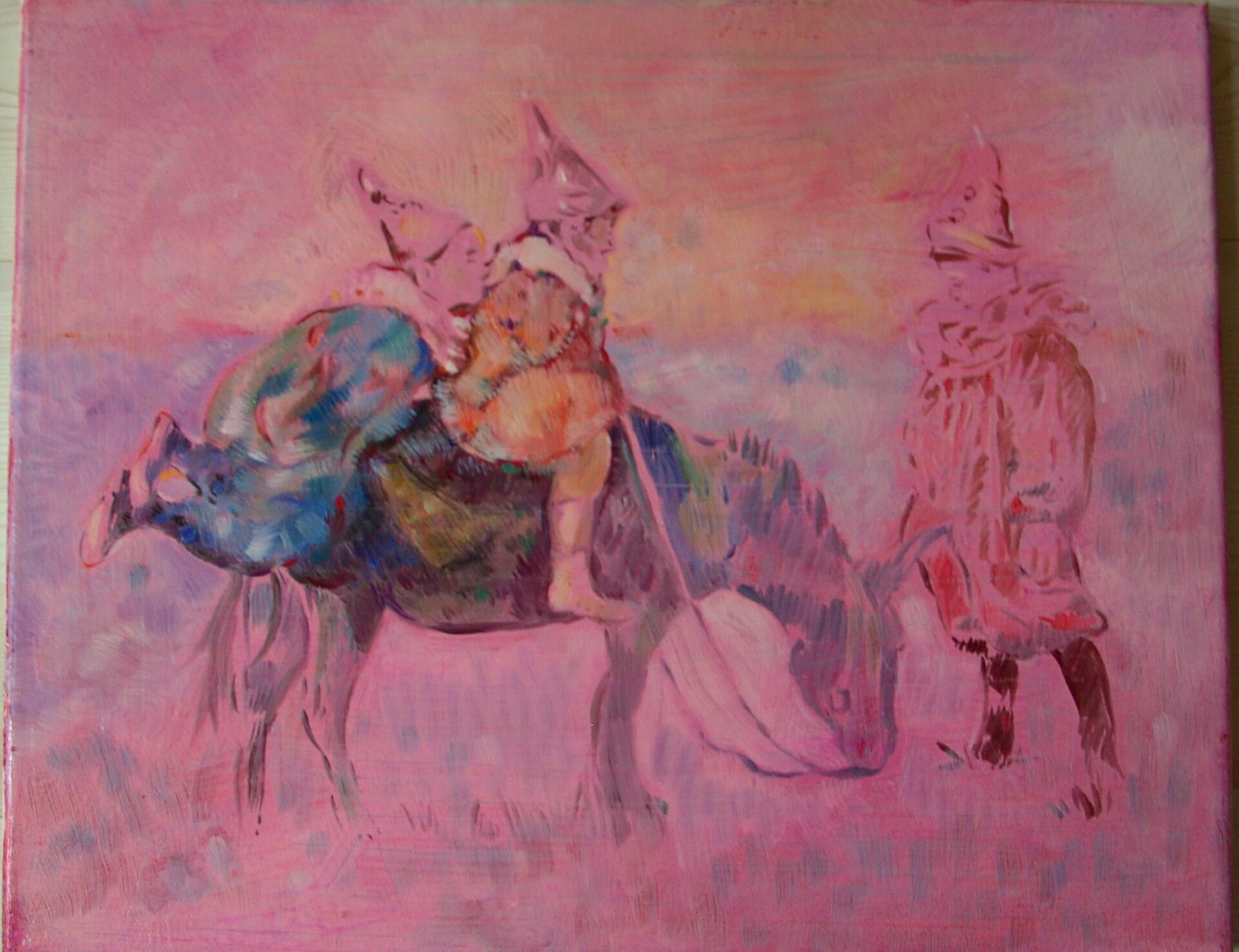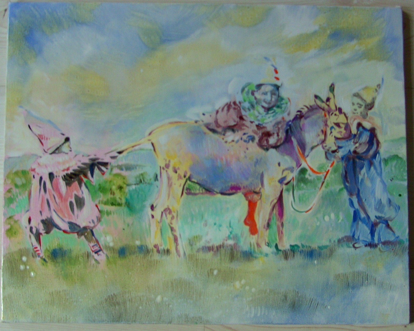 Le peintre Michèle Purnal nous invite à « Un tour du Monde sur un Ruban Rouge » en compagnie de quelques « Pierrots » . Enfants nous conviant en une initiation à la poésie de chaque instant…
